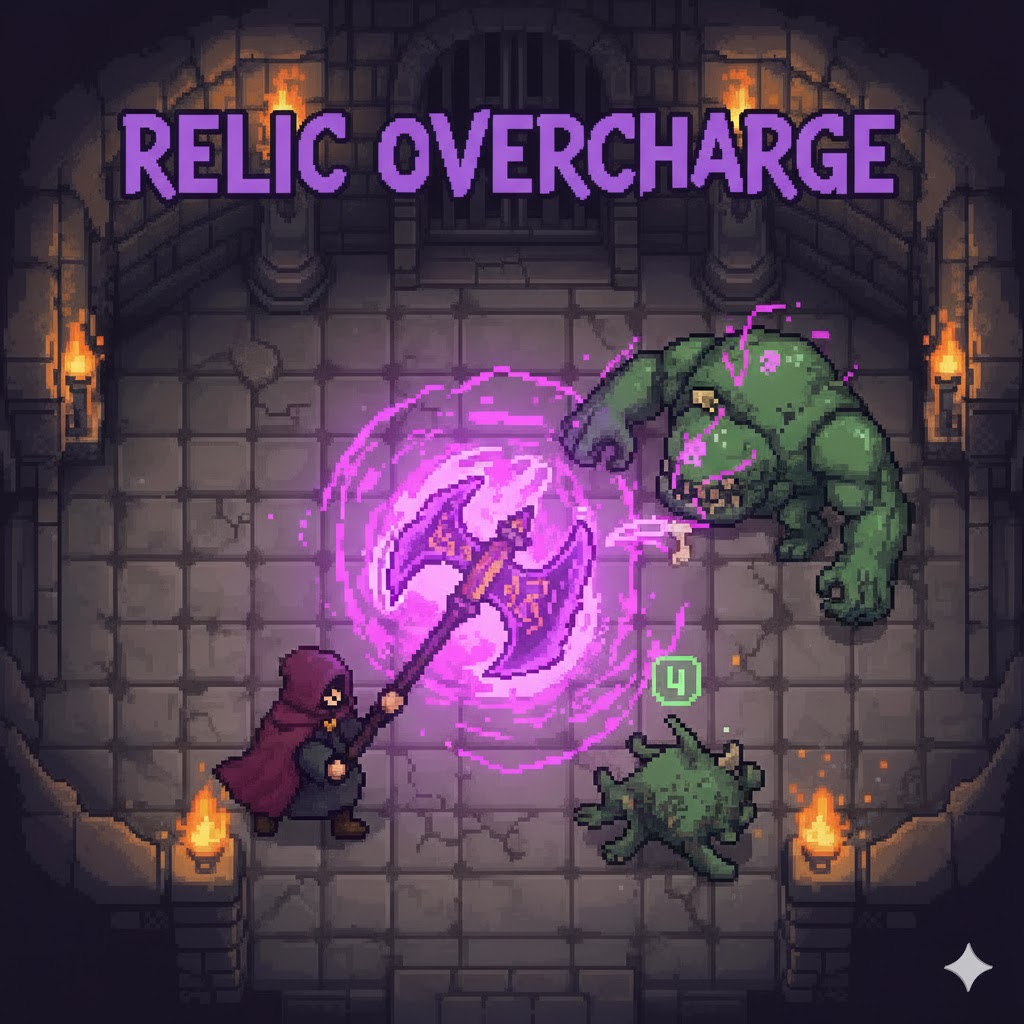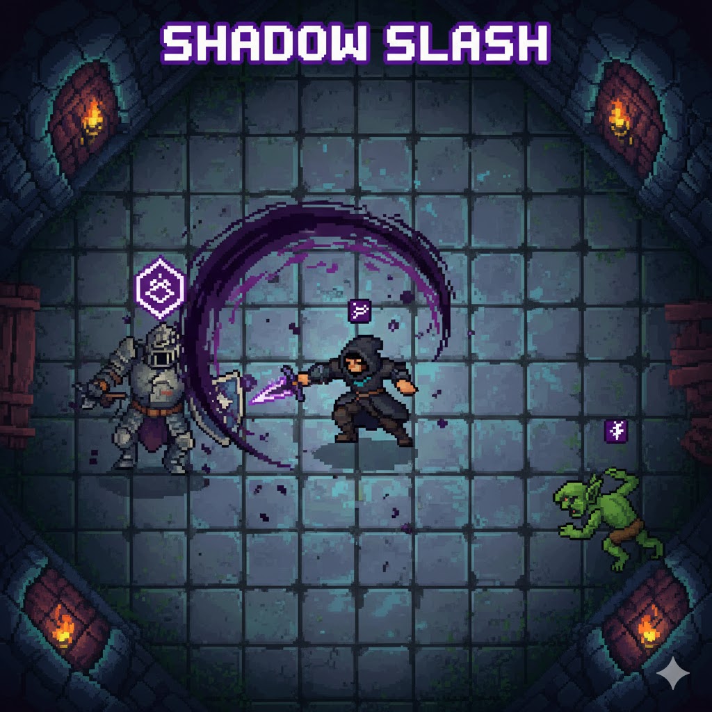 Effect: The equipped weapon emits a quick, hot pulse of deep violet light, and its sprite momentarily has a flickering purple aura. Each successful hit leaves a residual faint purple energy trail on the target.