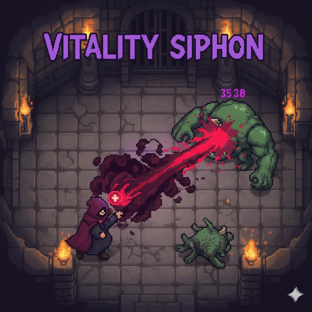 Description: A directed burst of dark energy that deals low-to-moderate damage to the first enemy struck. 50% of the damage dealt is immediately returned to the player as health, but the ability's mana cost is slightly higher than average, requiring calculated use.