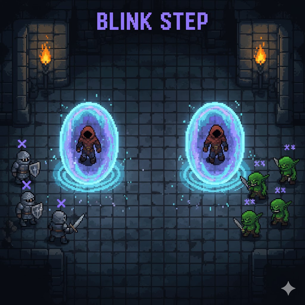 Description: The adventurer instantaneously teleports a short distance, passing through obstacles and enemies.