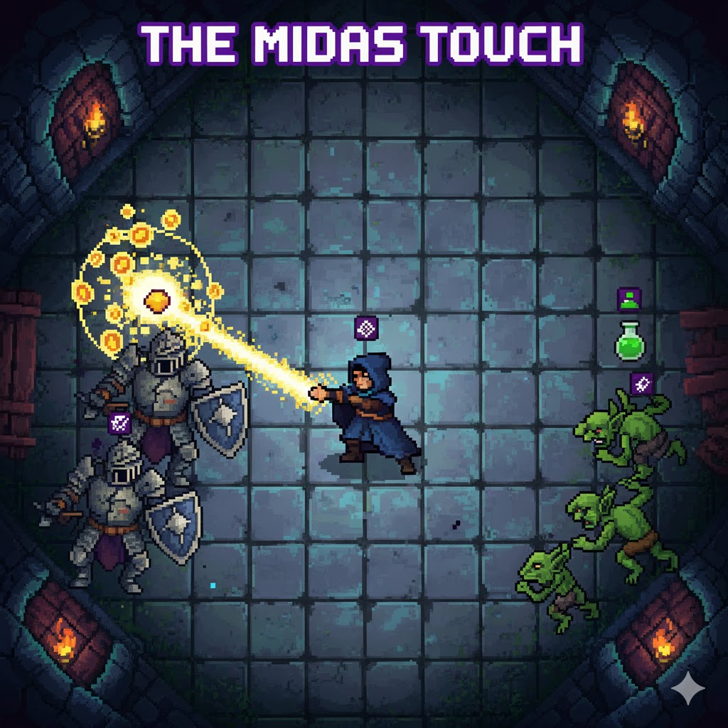 Effect: The next time the player damages an enemy, that enemy has a guaranteed chance to drop extra gold or a small shard of a rare crafting material upon defeat, even if they don't normally drop anything. This ability is useful for resource management and maximizing runs by boosting the in-game economy.